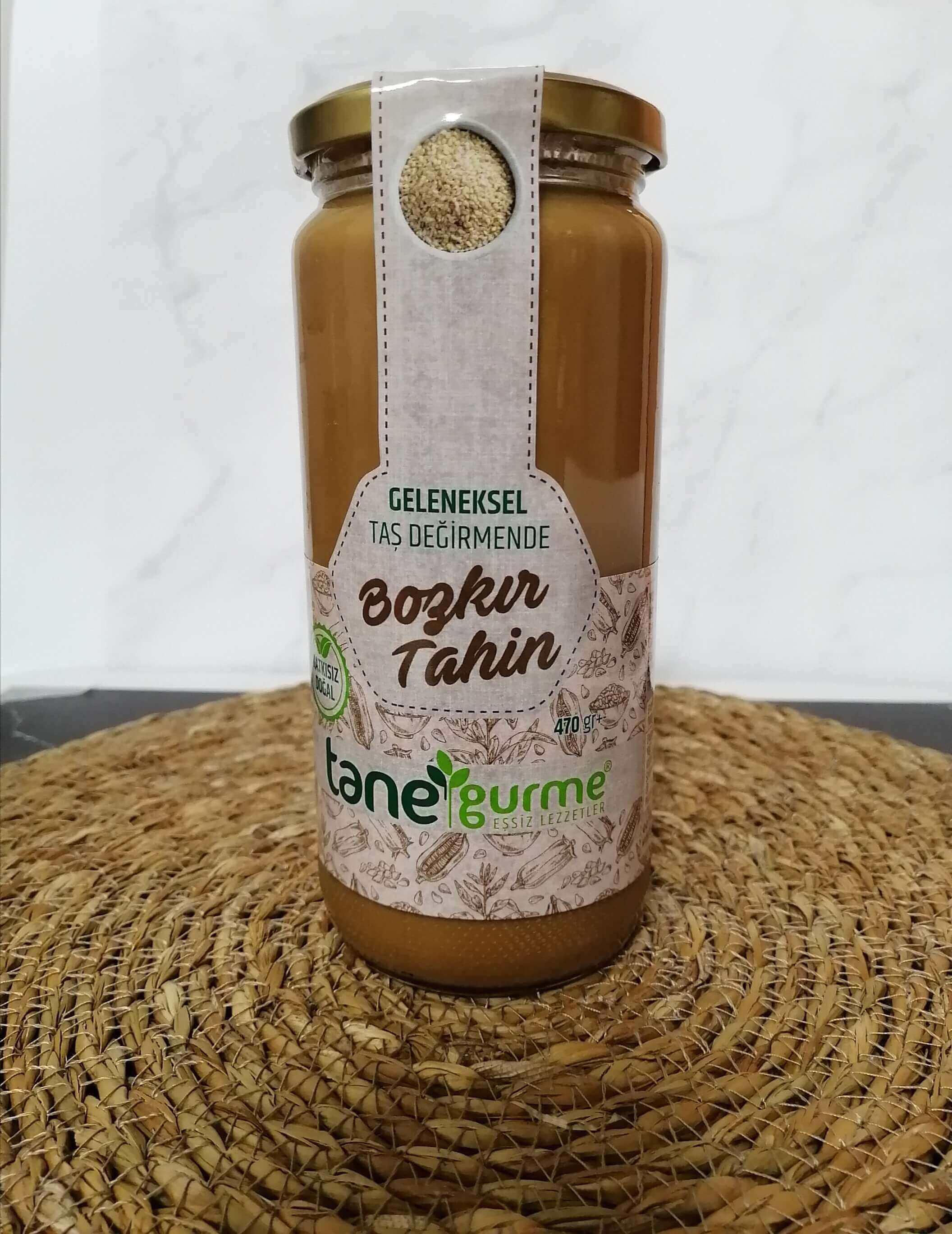 (BOZKIR TAHİNİ 470GR)Bozkır Tahini içerdiği kalsiyum, bakır ve fosfor gibi çeşitli mineraller sayesinde hem kemik sağlığınızı hem de beyninizi güçlendirir. Vücuttaki iltihabı baskılayarak astım başta olmak üzere bir çok hastalığa iyi gelir ve bağışıklığı güçlendirir. Kahvaltılarda krem çikolataya sağlıklı bir alternatif olan tahin-pekmez ikilisinin her yaştan seveni mevcut. Tahinin hakikisini bulmak Tane Gurme ile zor değil. Geleneksek taş değirmen bozkır tahini bir tıkla kapınızda.